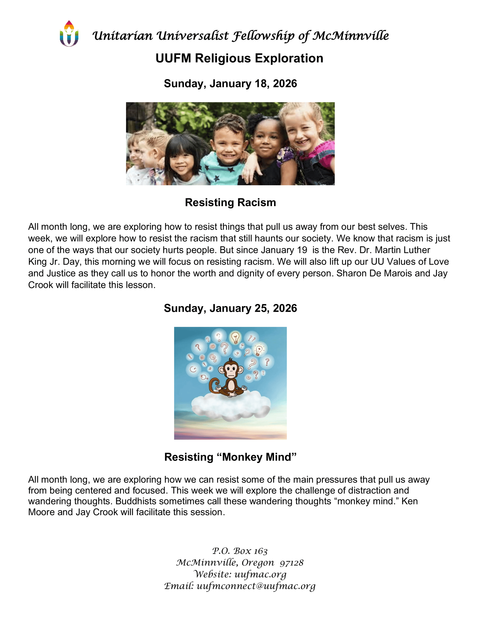 Children’s Religious Exploration, Resisting Racism, McMinnville Grange. Learn More.