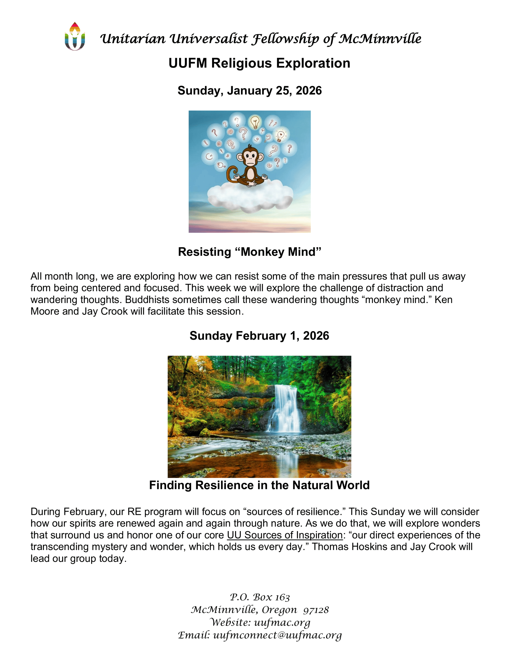Children's Religious Exploration, Finding Resilience in the Natural World, McMinnville Grange. Learn More.