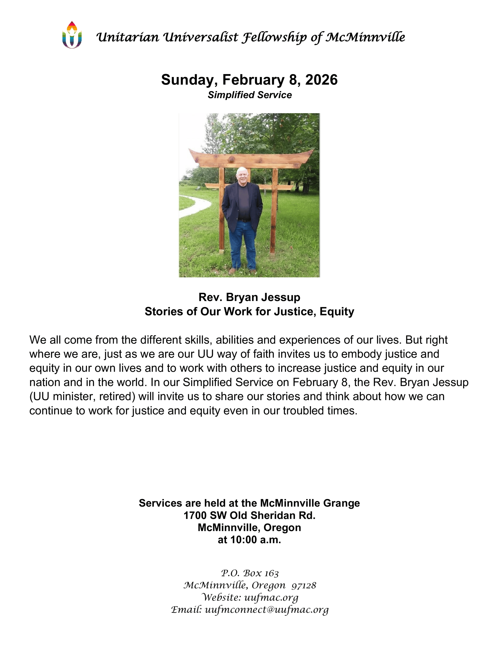 Simplified Service, Rev. Bryan Jessup, Stories of Our Work for Justice, Equity, McMinnville Grange. Learn More.