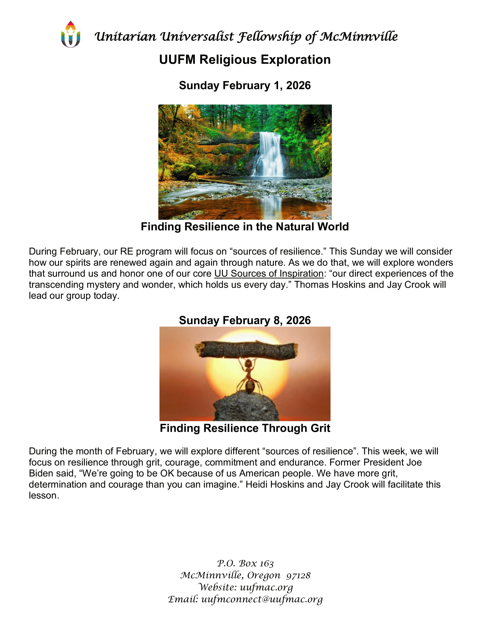 Children's Religious Exploration, Finding Resilience Through Grit, McMinnville Grange. Learn More.